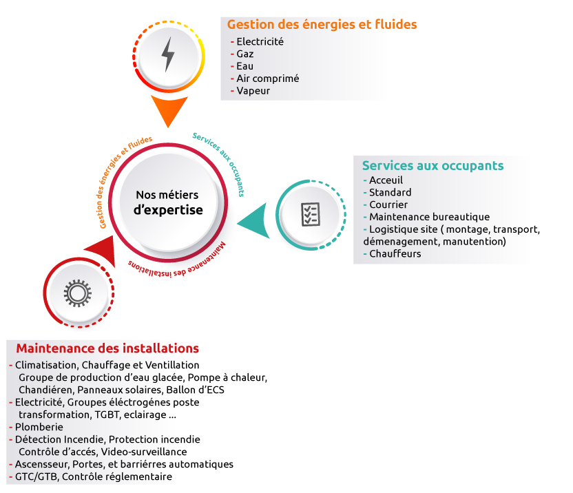 L'activité de Facility Management offre à ses clients des prestations de services couvrant un large éventail de métiers au sein et autour du bâtiment